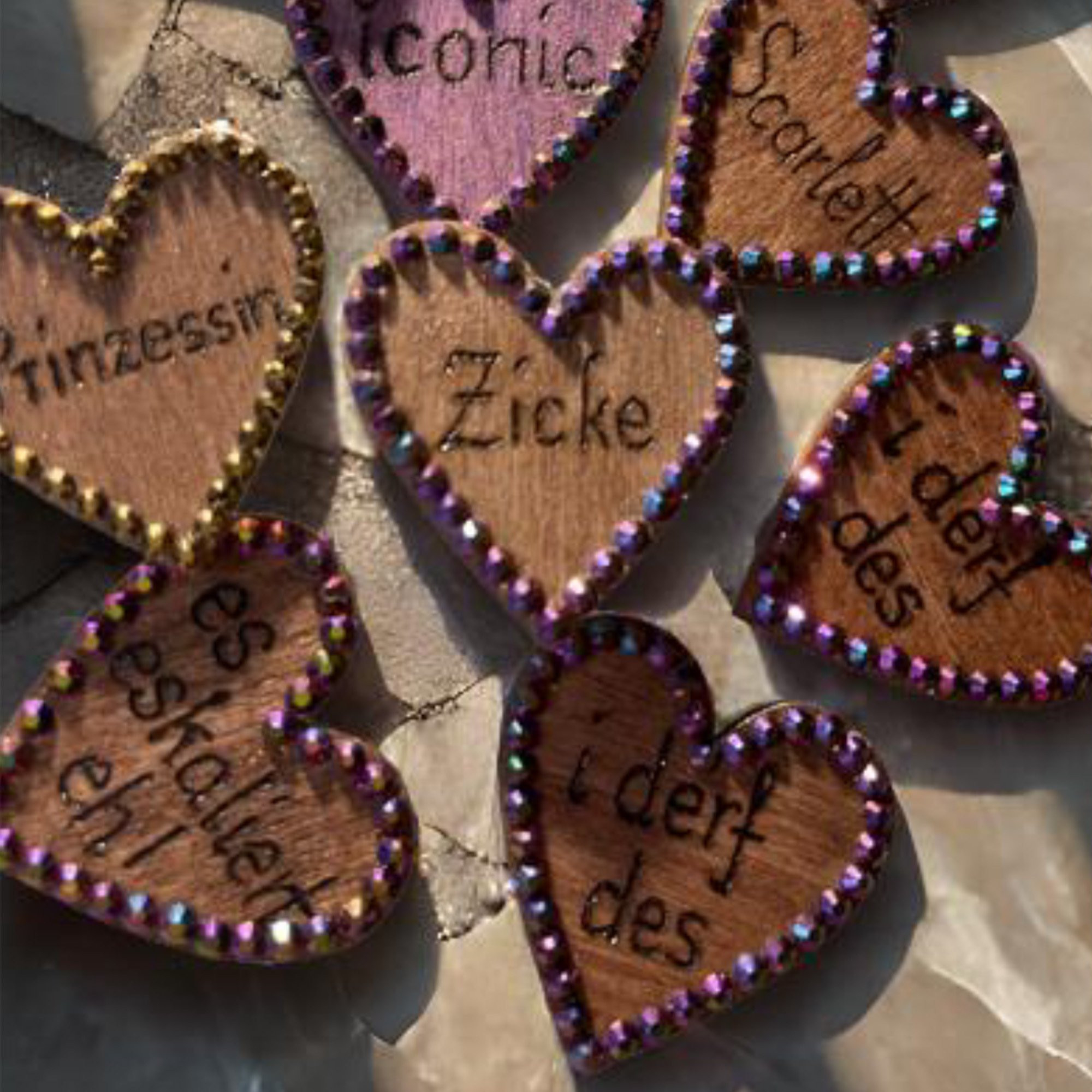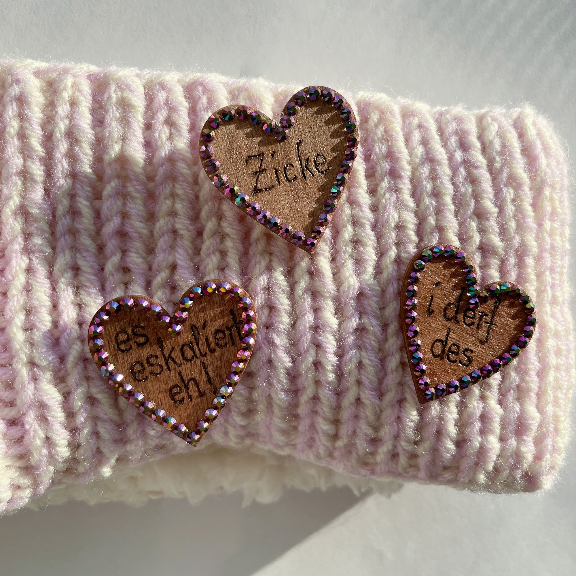 Unser Statement-Piece fürs Apres-Ski - Das "Hüttnherzl" Stirnband mit frechem personalisierbarem Glupperl. Wie immer mit Warme-Ohren-Garantie.
